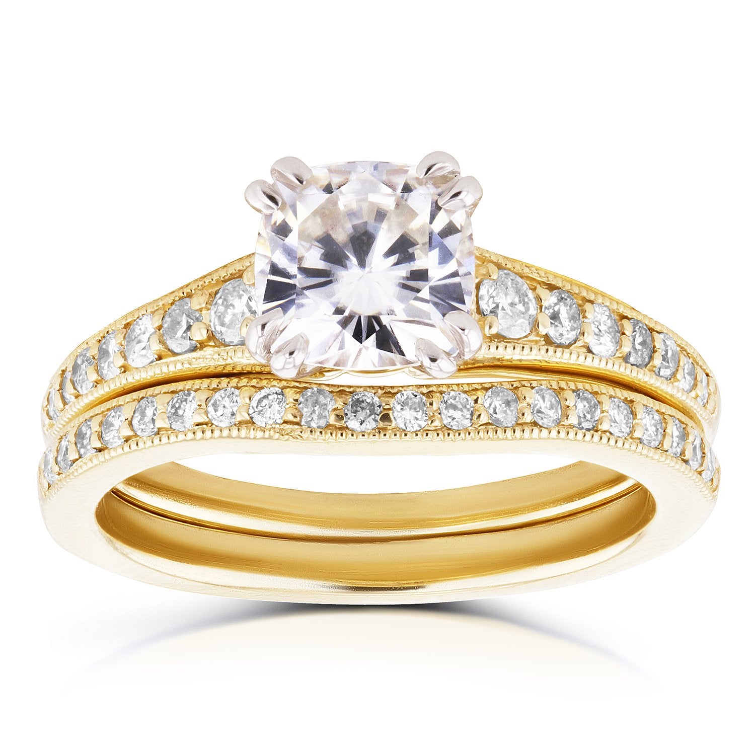 14k Yellow Gold Antique Moissanite Bridal Set with Diamond 1 1/2 CTW